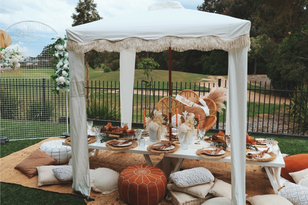 The perfect addition to provide some aesthetically pleasing shade for our pop up picnics or boho lounge areas. $200 day hire if added on to a picnic or backdrop package or $250 to hire by itself. Depending on availability, we also have two Moroccan tents available which make a larger space when combined. Includes free delivery, set up & pack-up within 15km of North Geelong.